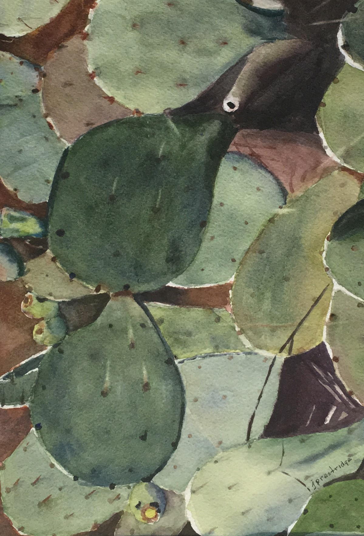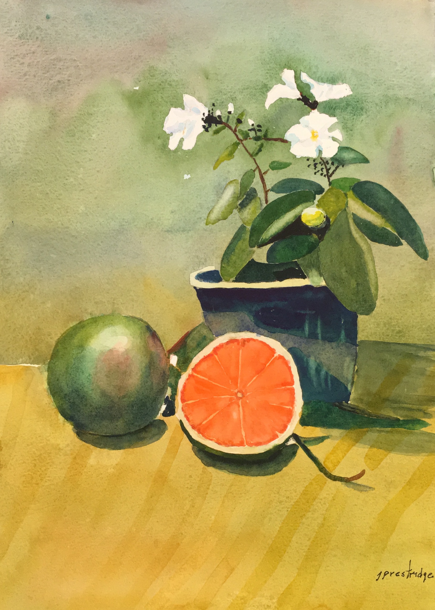 Jeff Prestridge left a trove of his watercolor paintings for us to enjoy. He did not exhibit many of the over 1,000 paintings he created in retirement. They were all practice on the way to being a better painter. The farmboy in him led his eye to landscapes, vegetable gardens, and luckily for us Alsatian homes.