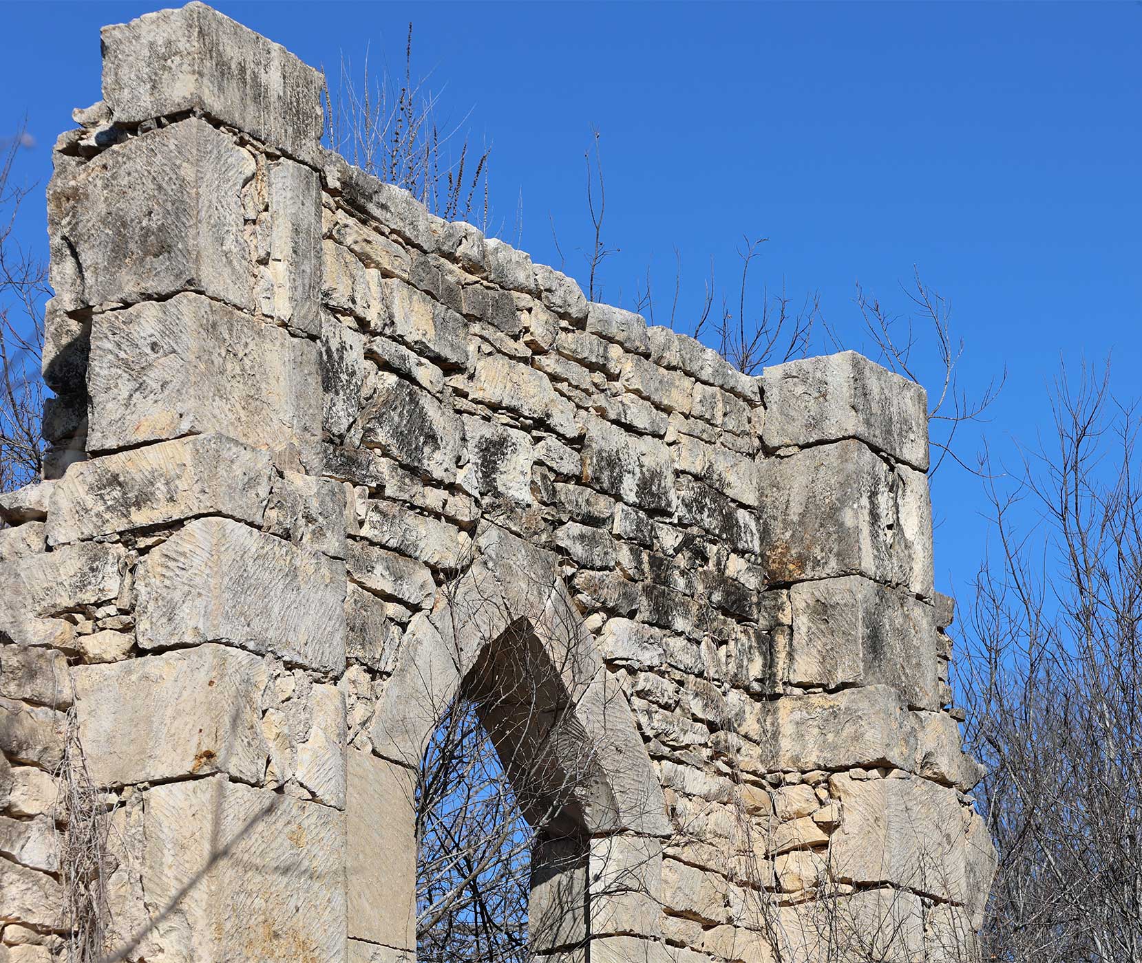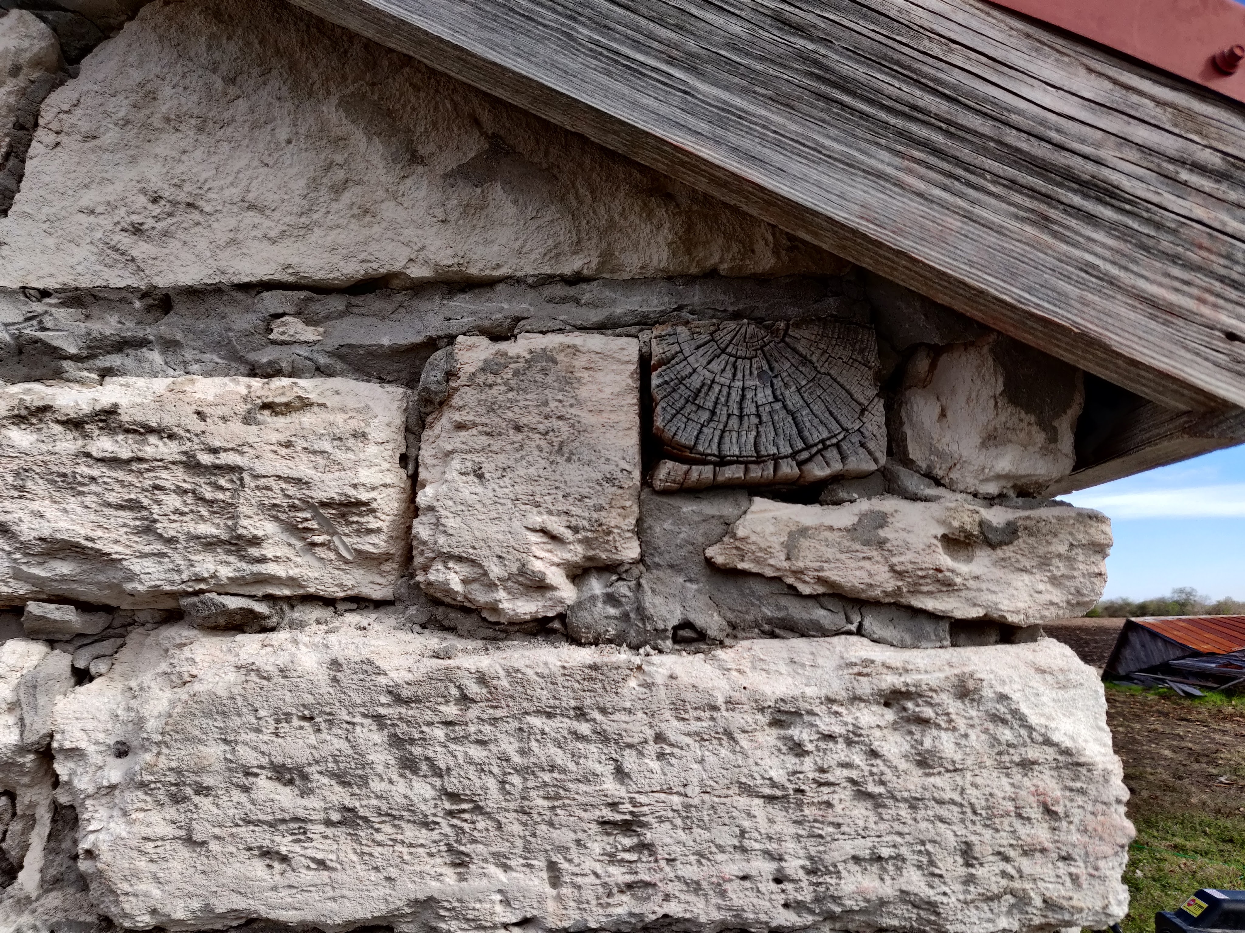 The limestone remains, while the cypress timbers have mostly vanished.