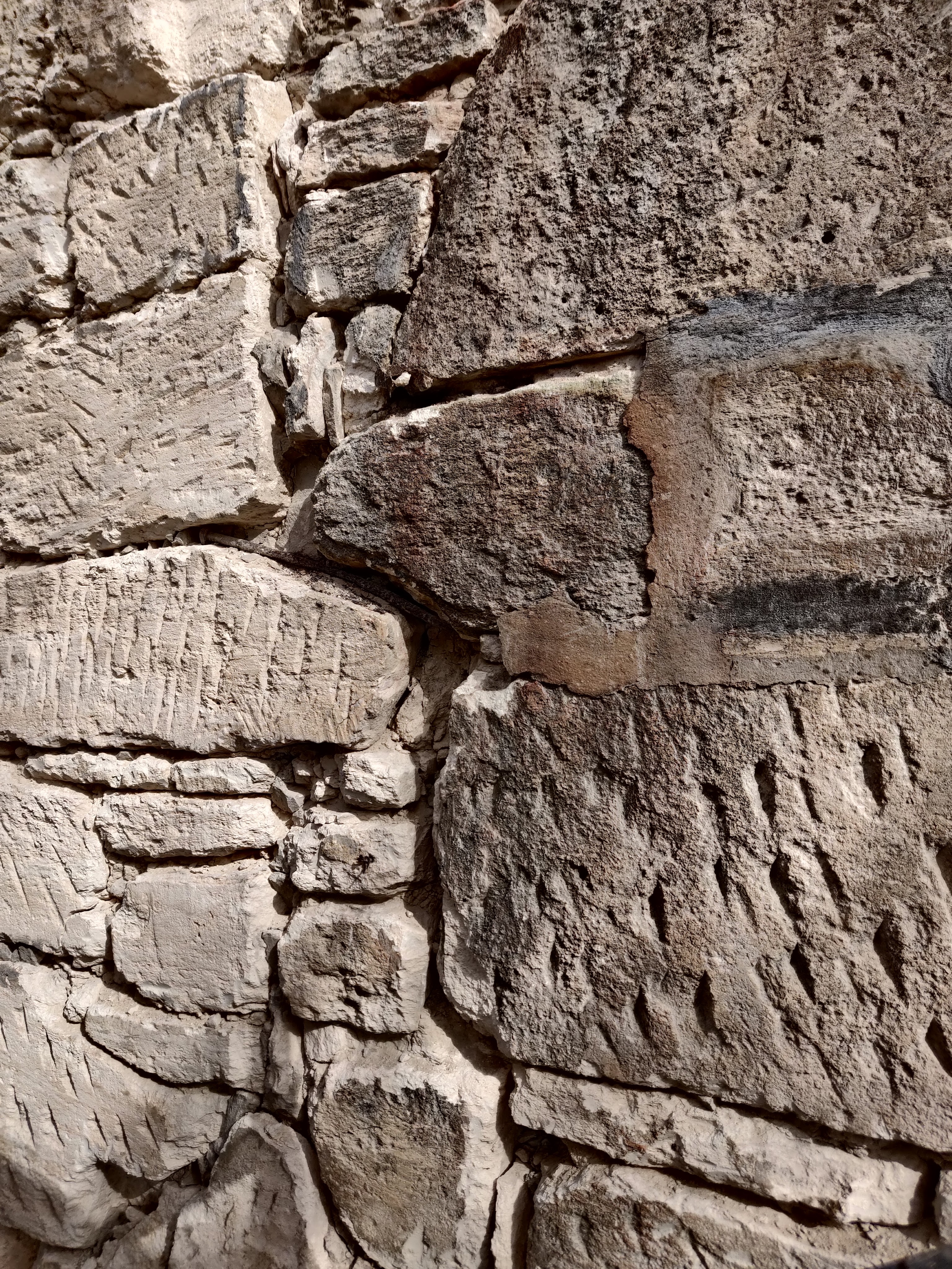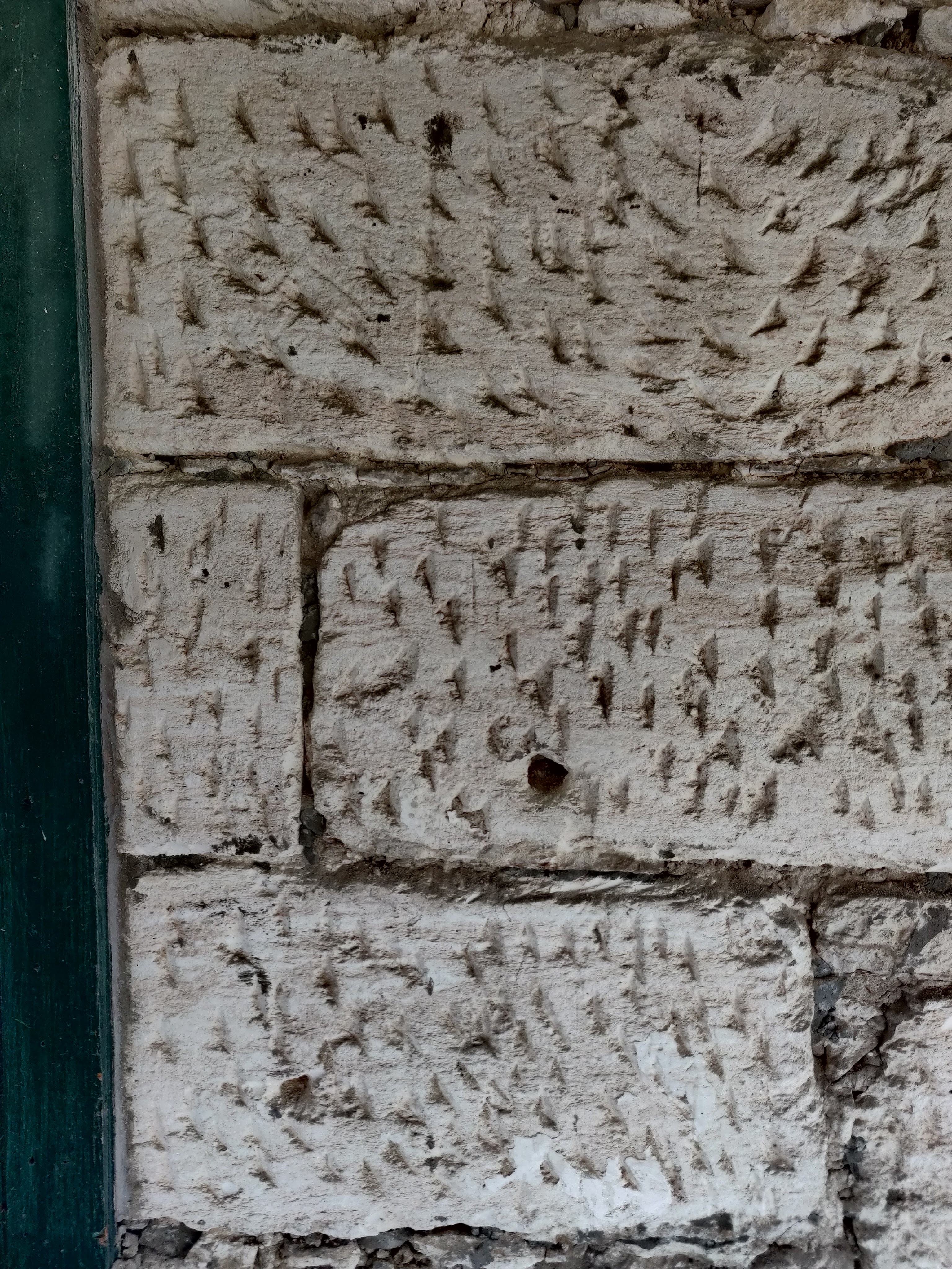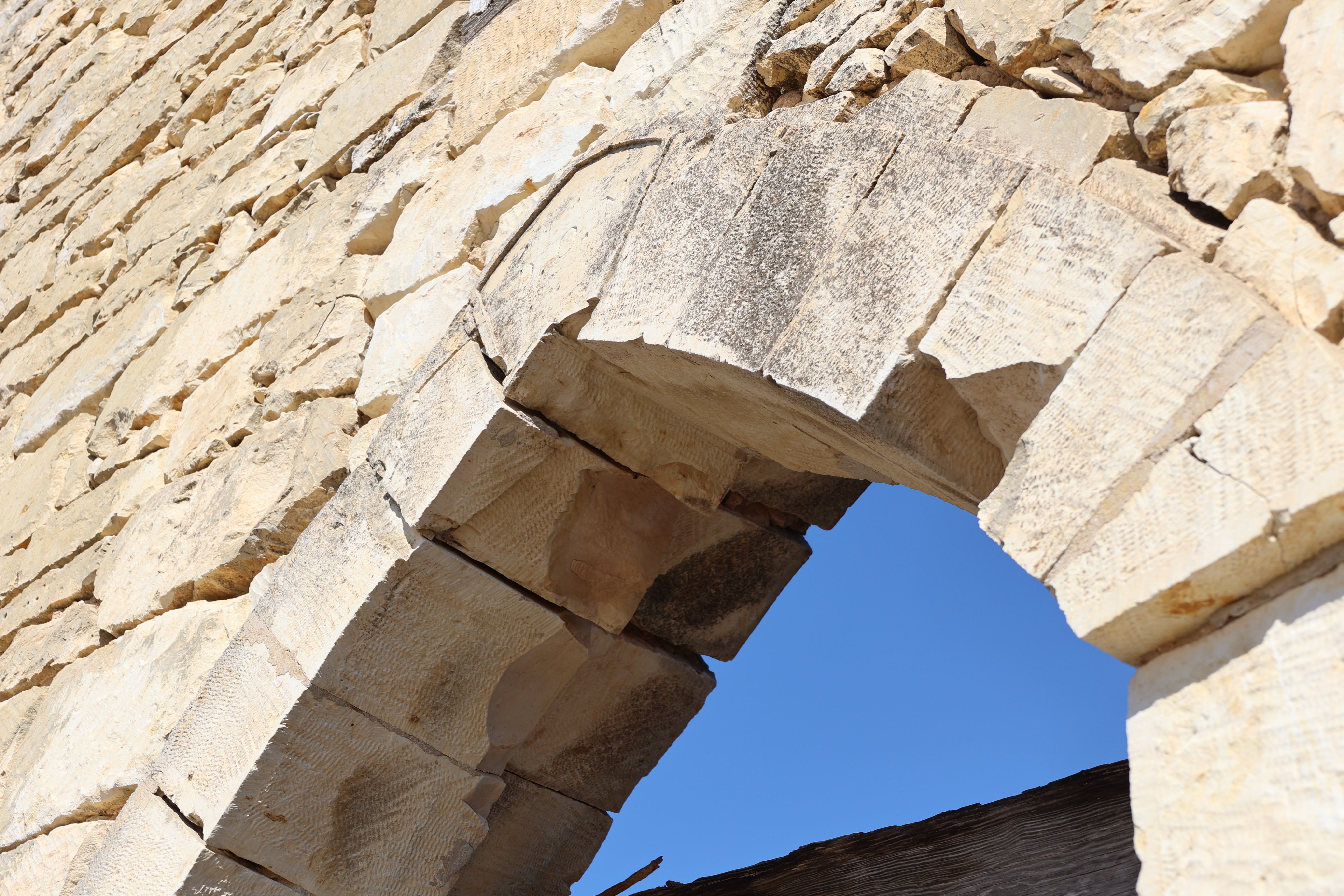 Church windows would have been filled with stained and ornate glass. Exterior stone faces all have noticeable chisel markings created by the stonemasons. These increase the ability of the flat stone faces to hold plasters and future lime washes. How many stone masons were needed in this area to build this significant structure and apparently so many more homes?
