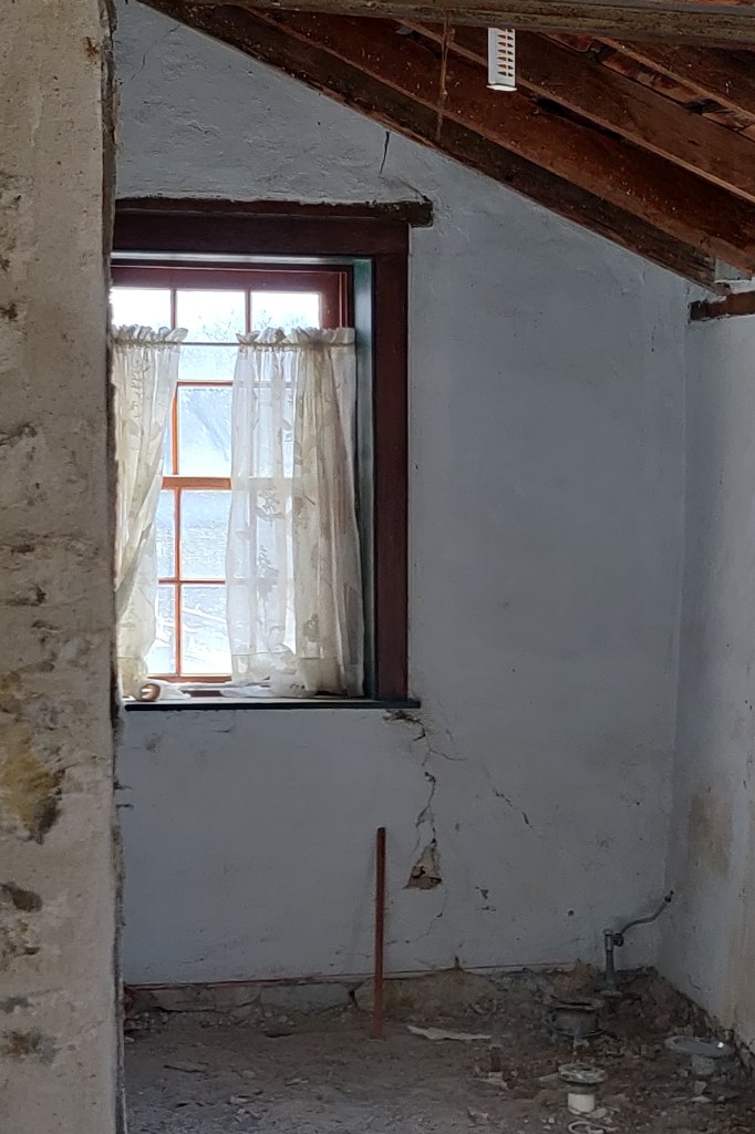 Then there was the most difficult and time consuming solution that sounded like it would last another 150 years. But there were many steps. Draw a structurally sound box, find the materials and a code welder to make it, grout it under the wall, repoint the wall inside and outside, refurbish the window sash, and then you can resume. It had to be the pass-through box solution. I helped dig the trench in 1970 and was not going to make that mistake again.