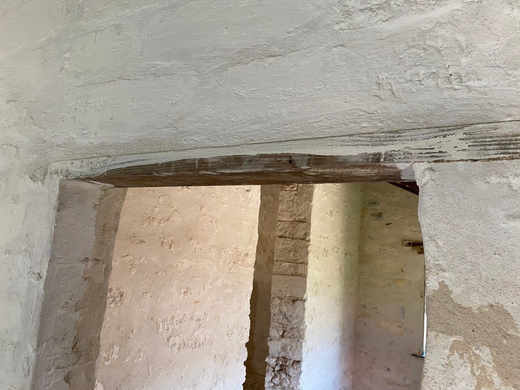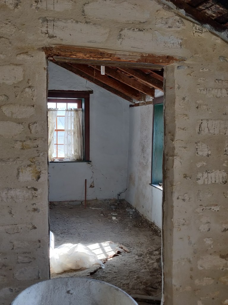 Images above from the 2021-2022 ongoing renovation. There are different chisel marks in each room and wall indicating different masons or time periods for construction. The Rohrbach home was built one room at a time, probably over several years.